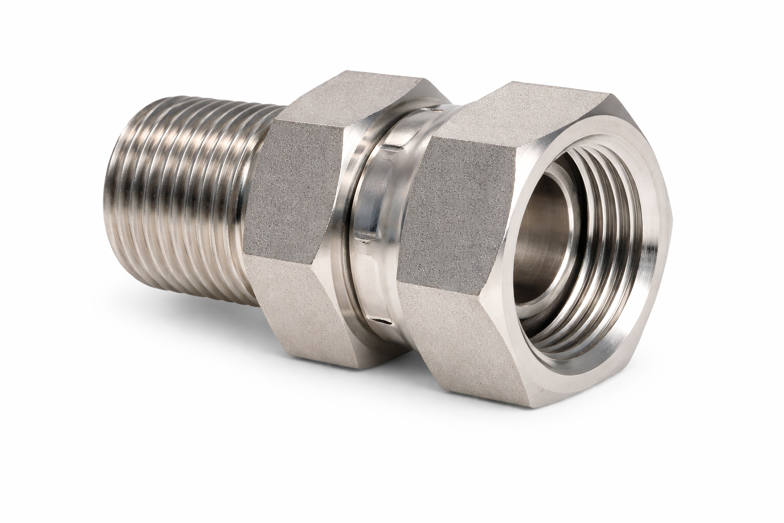 The Male Pipe x Female Pipe Swivel Adapter is a versatile hydraulic fitting designed to connect male NPT (National Pipe Taper) threads to female NPT swivel connections. The swivel end allows for easy installation and alignment without twisting hoses or tubing, making it ideal for tight spaces or dynamic systems.